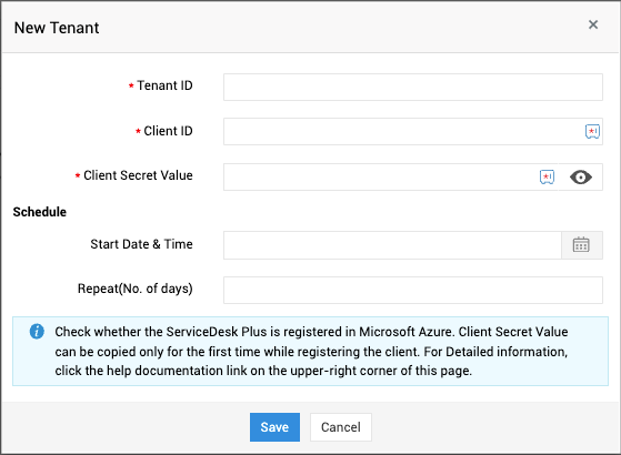 Client ID | Provide the client ID and secret value to authenticate the tenant. |